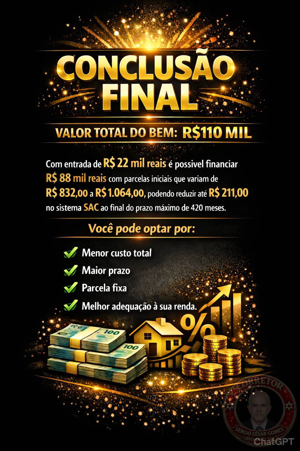 ✔ Melhor adequação à sua renda