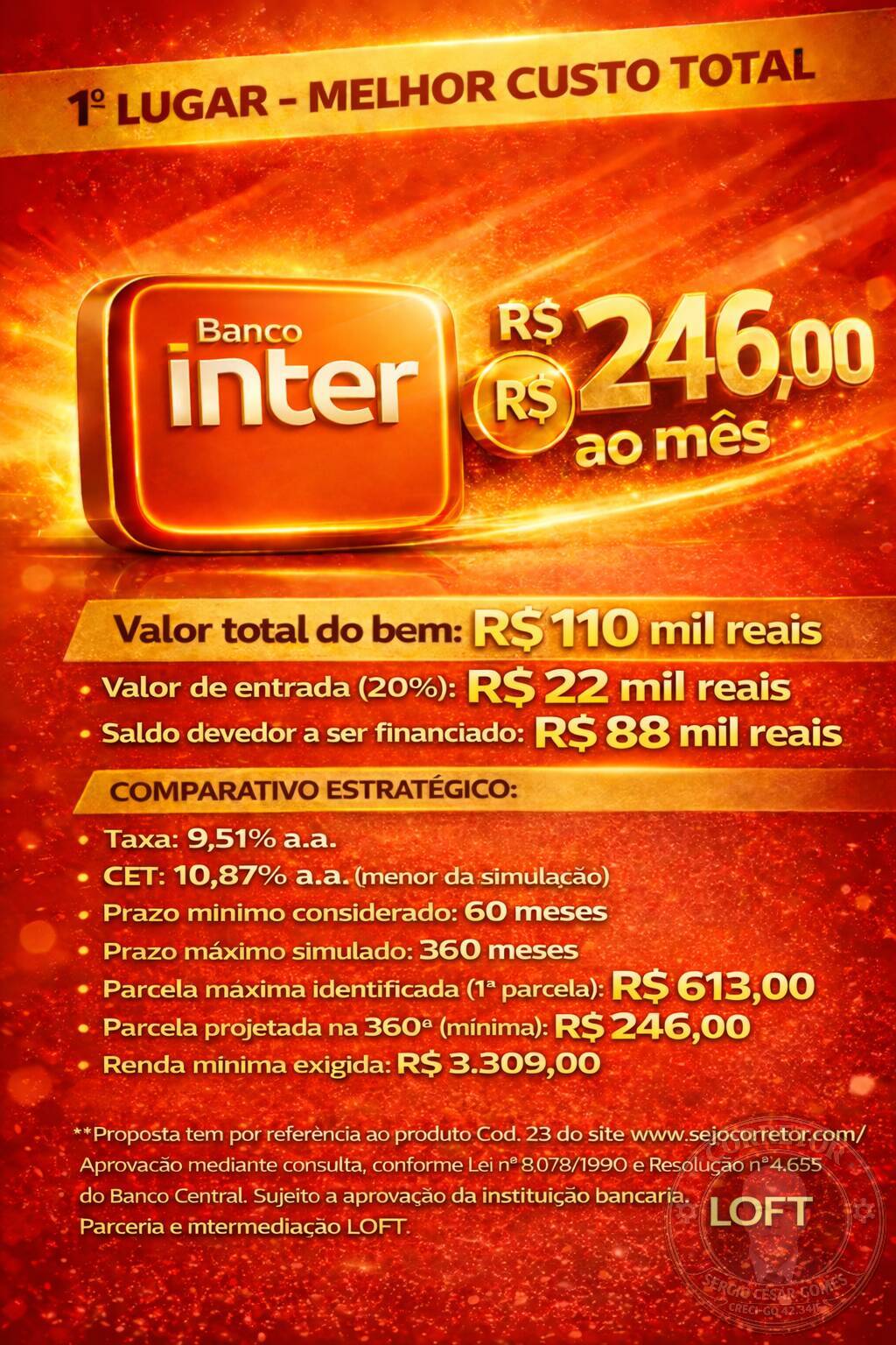 CET: 10,87% a.a. (menor da simulação)